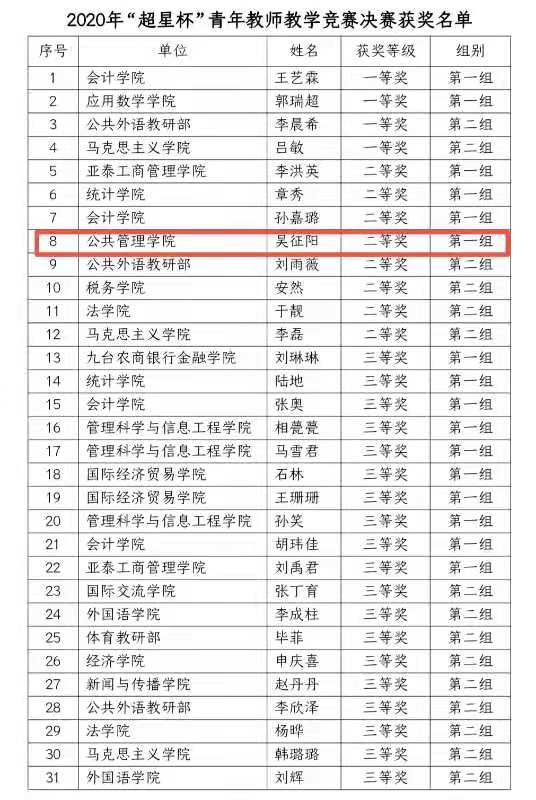 (通讯员:吕育娇)为贯彻落实《中共中央国务院关于全面深化新时代教师队伍建设改革意见》、教育部《关于深化本科教育教学改革 全面提高人才培养质量意见》、教育部《高等学校课程思政建设指导纲要》等文件精神,落实立德树人根本任务,进一步弘扬教学工作的主旋律,提高青年教师的教育教学能力,教师教学发展中心联合教务处、工会、人事处、党委宣传部联合举办了吉林财经大学2020年“超星杯”青年教师教学竞赛。