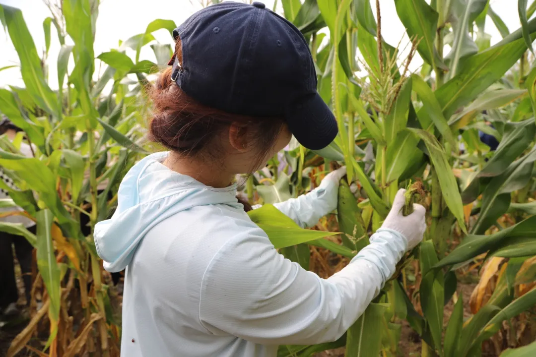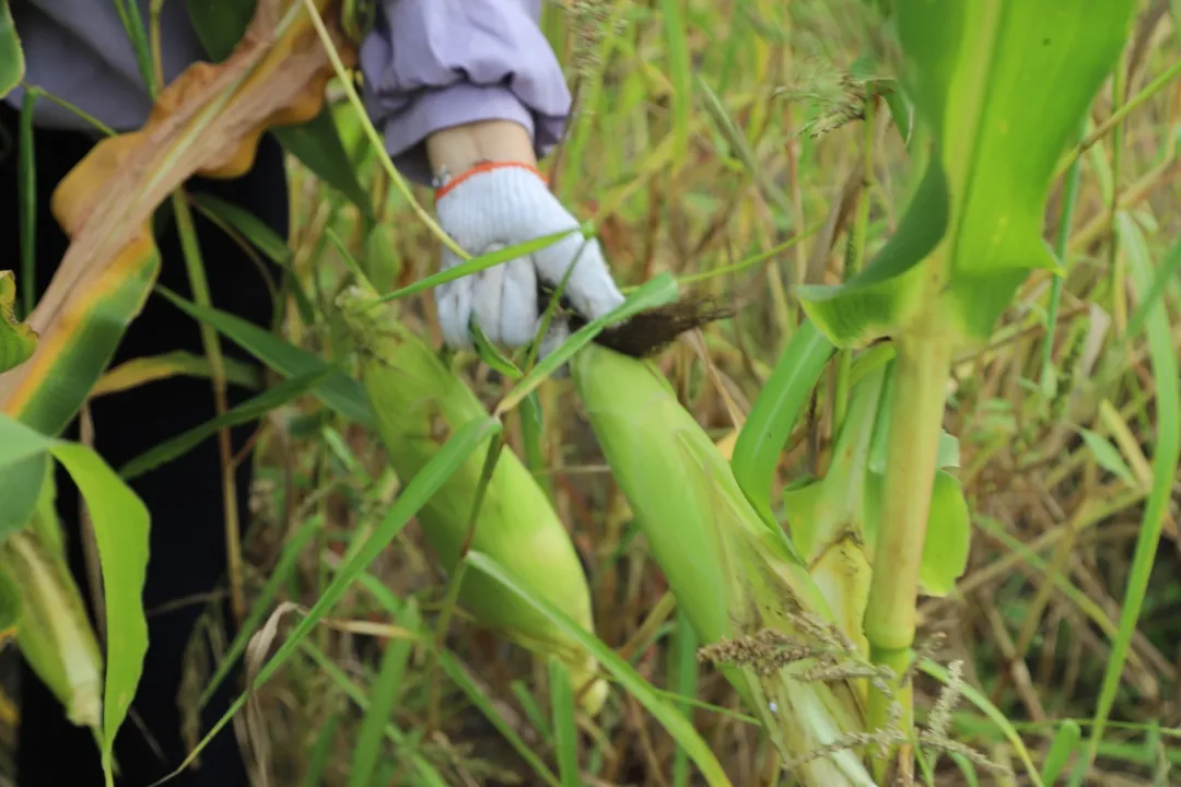 九月的阳光仍是热烈的,踏入玉米地的那一刻,同学们终于真正体会到了“锄禾日当午”的艰辛:玉米叶边缘锋利,划过皮肤又痒又痛,玉米秆高大密集,大家在其中穿梭,闷热难当。