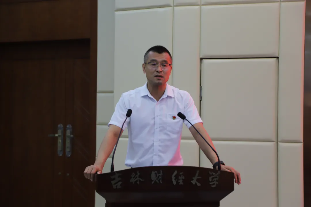 指导老师姜福奇书记进行总结讲话,他首先肯定了往届学生会的辛勤付出和工作成果,随后对新一届学生干部提出殷切期望与要求,希望他们牢记服务初心,勇于创新,打造更具活力和影响力的学生会组织。