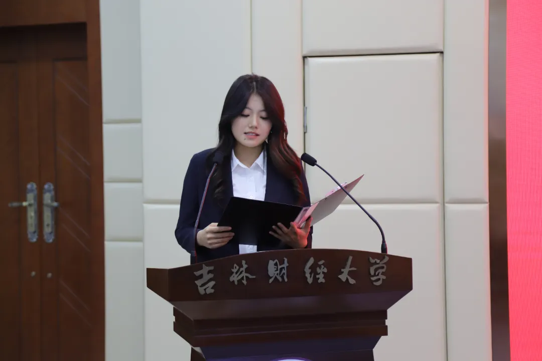 下午3:30,大会正式拉开帷幕。上一届学生会团副徐安麒担任主持人,她首先宣布大会正式开始,热情介绍到场嘉宾,并清晰说明大会目的及全流程安排,让在场人员对大会有了整体认知。随后,徐安麒结合自身工作经历,全面总结往届学生会的工作成果,如在组织校园文化活动、服务学生权益等方面取得的成绩,也分享了积累的实践经验,同时坦诚指出工作中存在待改进的不足,为新一届学生会工作提供了宝贵借鉴。