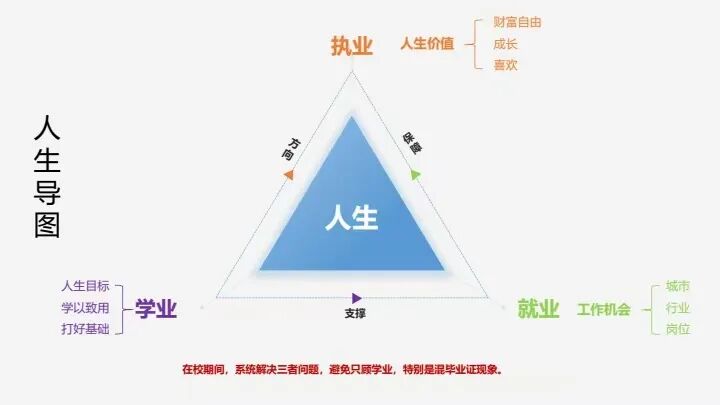 随后,崔少华董事长将视角延伸至“人生导图”,阐述了从学业到就业的完整人生规划逻辑。他认为,职业是实现人生价值的关键路径,要以“财富自由”为物质保障、“成长”为内在追求、“喜欢”为情感驱动,在职业中找寻价值感。而就业则需把握“城市”“行业”“岗位”三大维度,精准匹配个人发展需求。这一切的实现,都离不开学业的强力支撑,学生在校期间要明确“人生目标”、做到“学以致用”,“打好基础”,系统解决学业、职业、就业的联动问题,避免“混毕业证”的盲目状态。