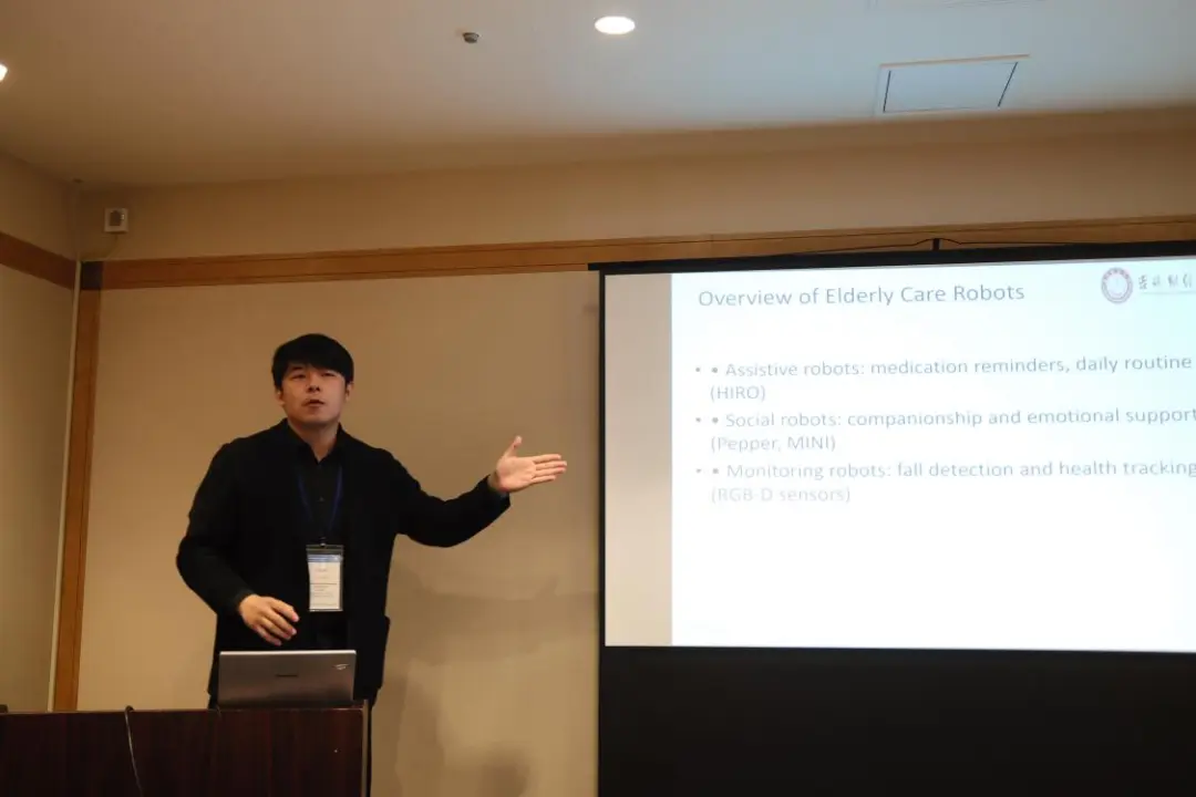 在会议期间,刘相禹老师围绕老年认知症护理中机器人应用的实践经验与现实问题进行了深入报告,系统分析了我国吉林省在该领域的技术部署现状、政策环境、伦理问题及推广难点,引起了与会专家的广泛关注。报告中提出的“以科技创新促进老年福祉”的理念,获得了多国学者的积极回应。
