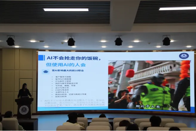 讲座中,赵丹林老师围绕生成式AI的核心功能、应用场景展开深度讲解,结合学习资料生成、论文框架搭建、职业规划辅助等贴近学生需求的实例,生动演示如何将技术转化为自主学习的 “工具” 与职业发展的 “助力”。现场互动环节,同学们踊跃提问,针对 “AI生成内容的甄别与优化”“如何平衡技术依赖与独立思考” 等问题与老师深入交流,思维碰撞间尽显对智能技术应用的探索热情。整场讲座学习氛围热烈,不仅让同学们系统掌握了生成式AI的实用技巧,更启发了大家以技术赋能学习、以创新驱动成长的新思路。