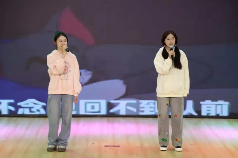 激烈紧凑的比赛间隙,刘一璇、杨雨晴两位同学带来中场歌曲演出。婉转悠扬的旋律为现场营造了轻松氛围,既舒缓了选手的紧张情绪,也让观众在沉浸式聆听中短暂休憩,为后续环节蓄力。