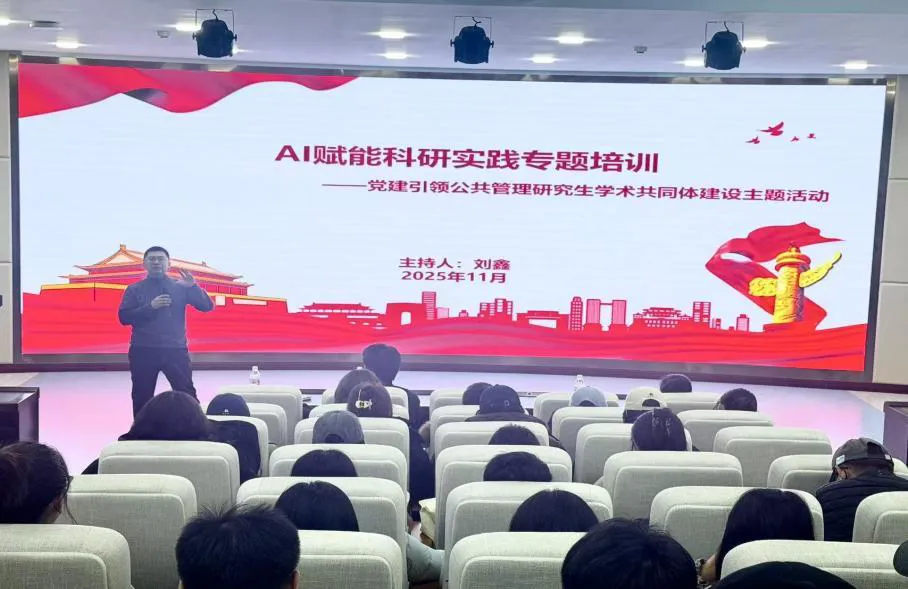 (通讯员:储琳新)11月25日,公共管理学院开展了党建引领公共管理研究生学术共同体建设活动,主题为“AI赋能科研实践专题培训”。本次活动邀请刘相禹博士,向公共管理学院研究生展示了“研究者主导、AI辅助”的科研新范式——人工智能深度融入跨学科研究的全过程,为公共管理研究生学术研究开辟了新路径。