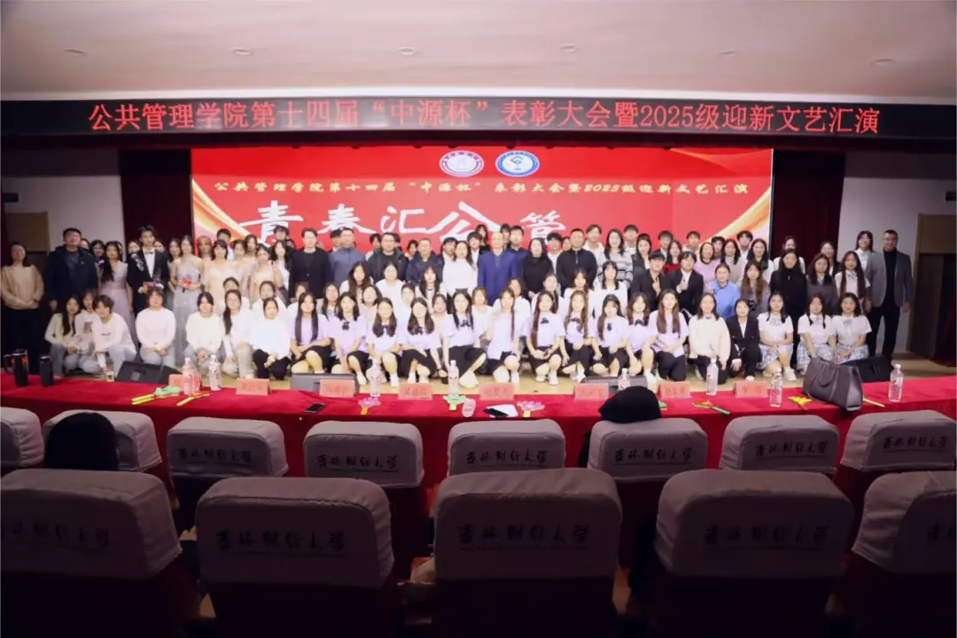 吉林财经大学公共管理学院于12月12日在第一教学楼1101报告厅举办2025级迎新文艺汇演。公共管理学院全院教师与全体大一和大二学生共同观看演出。