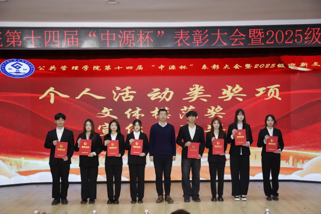 2025年12月12日公共管理学院第十四届“中源杯”表彰大会在第一教学楼1101报告厅顺利落幕。